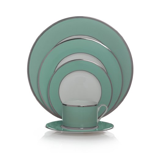 - 1 Mikasa Color Studio Turquoise-Platinum 5- Piece Place Setting Includes 1 of the Following: Dinner Plate, Salad Plate, Bread and Butter Plate, Teacup, Saucer